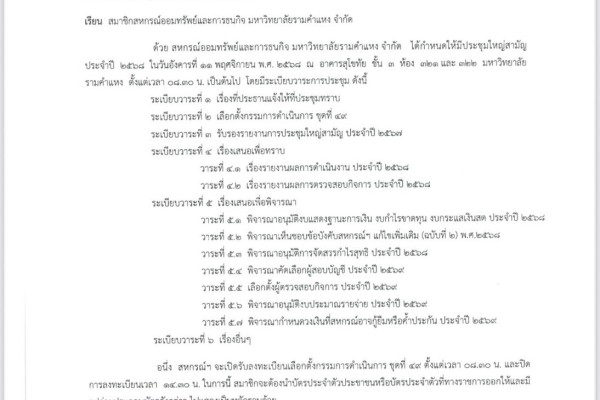 ขอเชิญประชุมใหญ่สามัญประจำปี 2568