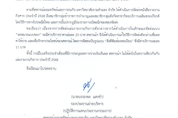 ส่งมอบเล่มรายงานกิจการประจำปี 2568