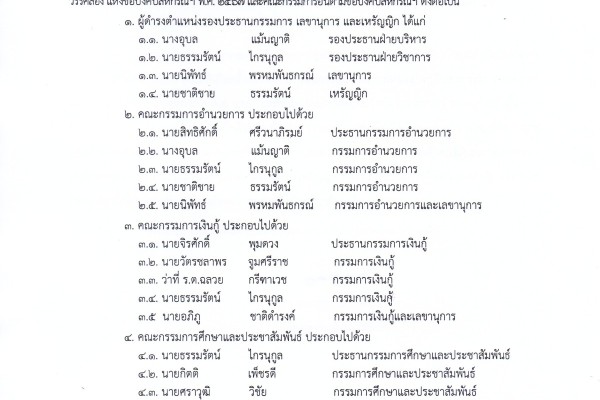 เรื่อง การเลือกตั้งรองประธานกรรมการ เลขานุการ เหรัญญิก และคณะกรรมการอื่นตามข้อบังคับสหกรณ์ฯ